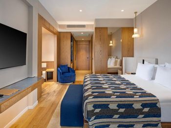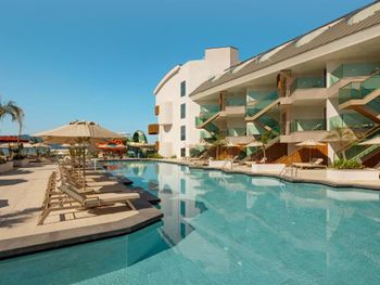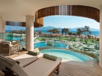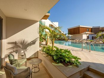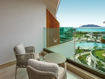 Всё замечательно: еда, номер с выходом к бассейну, вид из номера отличный. Отдельные зоны для людей с детьми и без: пляж, бары и бассейн