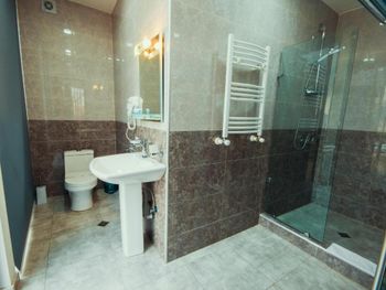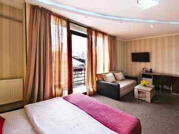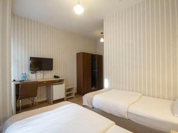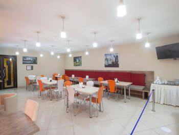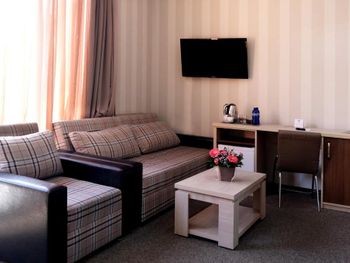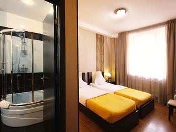 Были минусы например очень неприветливое обращение работников,нас заселили в комнату в цокольном этаже но после нашего отказа поменяли на номер который на фото несмотря на то что, мы бронировали номер с двумя отдельными кроватями и другими удобствами, в ванной комнате было чисто но были некоторые моменты которые портили ощущение чистоты подставки для душа и мыла были ржавые и грязные,так же в комнате не было чайника как было на фото, завтрак был обычный за такую цену нормально.