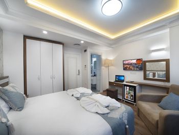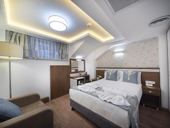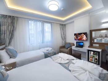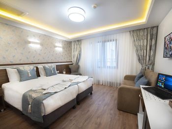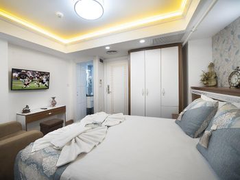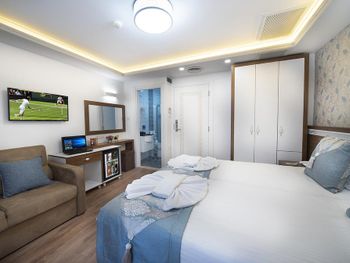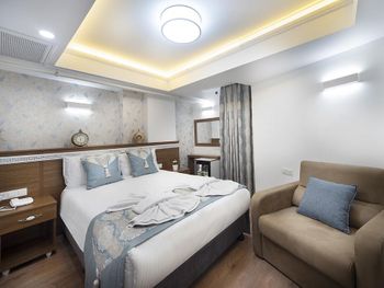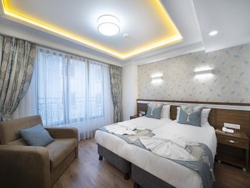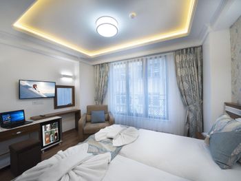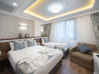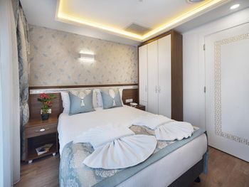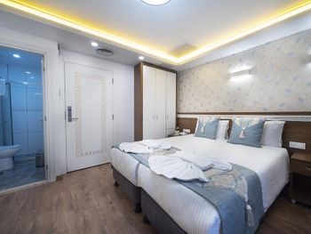 Небольшой уютный отель. Есть лифт. Комфортный, тихий, чистый номер. В номере тепло (были в январе), батарея от стены до стены. Хороший напор воды в душе. Фен, чайник и холодильник - отлично работают. Хороший Wi-Fi. Полотенца меняли каждый день, постельное белье 1 раз за 5 ночей. Уборка каждый день. В санузле есть гель, шампунь, мыло. Есть одноразовые тапочки. Отель в шаговой доступности от достопримечательностей. Рядом кафе, хамам, на соседней улице аптека и супермаркет. Хорошее соотношение цена-качество. Муэдзин очень красиво пел в 06:45 как раз у нас был подъем. Персонал благополучно разрешил вопрос с путаницей в бронировании. В распечатке на русском языке было указано 2 номера и 4 гостя, а в распечатке бронирования на турецком языке и на компьютере в отеле 2 номера и 2 гостя. На сайте отеля одинаковая цена за улучшенный номер за 1 или за 2 гостя. Нас не обманули и не требовали дополнительную оплату. Сотрудники были приветливы предоставили дополнительно стаканчики для чая и помогли погрузить чемоданы в машину.