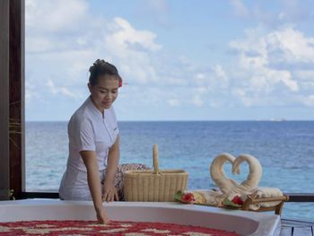 Цена полностью соответствует качеству!Если жить в обновленных виллах) Ремонт потрясающий, чистота, наполняемость бара👍🏻Сначала нас заселили в номер с гидромассажной ванной, как мы и резервировали, ванна огромная, прямо на пляже😅все было прекрасно до того момента, пока не стали приезжать рабочие к берегу и ремонтировать его (берег вымывался, рабочие привозили песок), если бы это происходило, когда нас не было в номере-ок,но это было 2 раза в день, когда я отдыхала на лежаке на пляже и уединенность нарушалась. Мы сразу сообщили, что это не соответствует отдыху на Малтдивах и через некоторое время нам предложили заселиться в другой номер, выше категории с бассейном и через три номера после нашего👍🏻мы приняли предложение и поблагодарили👍🏻Очень здорово, что данную неприятность устранили сразу же.
