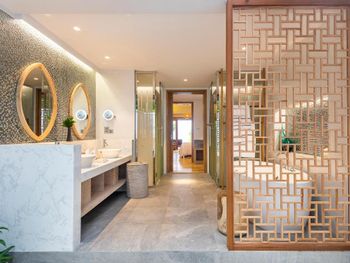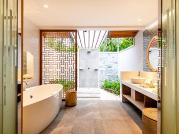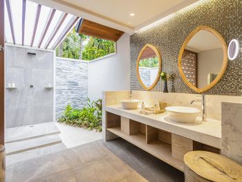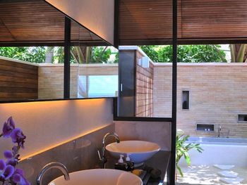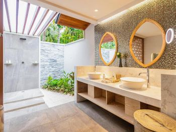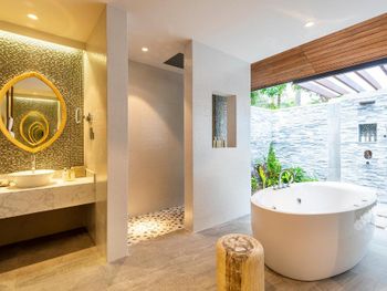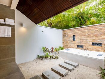 Жили в номере с джакузи, джакузи большая можно немного поплавать , номер после ремонта , виллы пляж немного усталые(сказали будут делать ремонт), виллы с двумя спальнями -это две виллы пляж между ними дверь(тоже маленько уставшие).