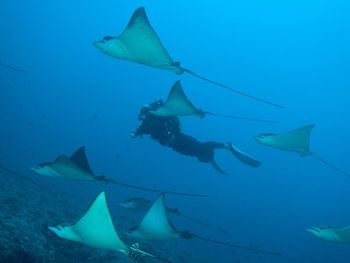 Ездили на экскурсию и видели пятнистую акулу и мант!это было невероятно!Так вышло, что нам пришлось поехать 2 раза, так как в первый раз поездка не удалась, возможно команда попалась не супер заинтересованная в поисках акулы и мант, второй раз нам сделали скидку в 50% и нам очень повезло с командой!мы видели всех и поплавали с ними долго!