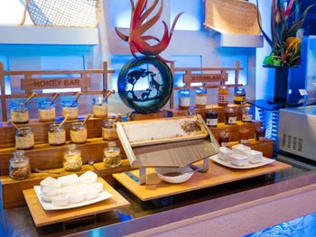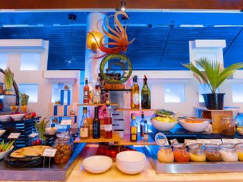 Соки подают свежевыжитые, выпечка и тортики вкусные, тематика ужина каждый вечер разная, морепродукты были, рыба постоянно, салаты, большой выбор сыра,картошка, макароны, пицца и т.д. еды много , выбрать всегда есть из чего.