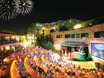 В двухуровневых бассейнах установлены гидромассажные ванны. Гости могут посетить полностью оборудованный фитнес-центр и принять участие в ночной развлекательной программе.