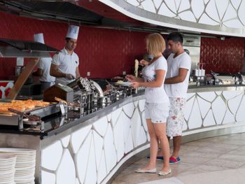 Отдыхали по системе Ультра Олл Инклюзив. В мини баре не было алкоголя. Пиво стали ставить только на третий день после многочисленных походов на ресепшн. Вино и фрукты, обещанные при заказе через booking никто так и не дал. Ассортимент еды совсем не велик. В связи с коронавирусом к любой еде надо стоять в очереди. Куча каких-то беснующихся детей.