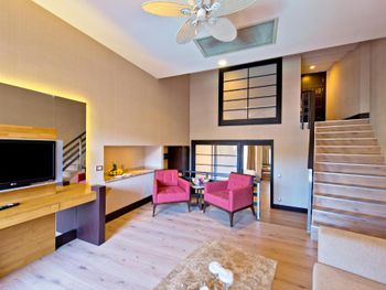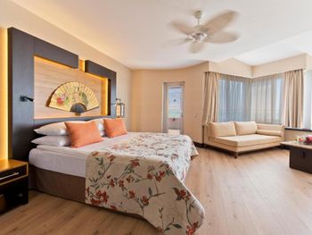 Номера курортного отеля Limak Lara De Luxe Antalya обставлены современной мебелью с элементами турецкого стиля и оборудованы кондиционером. В просторной гостиной зоне установлен телевизор с плоским экраном. В некоторых номерах также имеется гидромассажная ванна и терраса с видом на море. По прибытии гостям предоставляется бесплатная корзина с фруктами в номере.