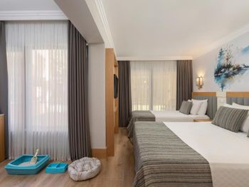 Цена не соответствует тому что предлагается Еда однообразная , единственное что понравилось это море,но это не заслуга отеля Бронировали на 3 дня все бы хорошо,если бы на третий день с нас попросили доплатить 250 евро Оказывается одному ребенку нашему 15 лет Куда смотрел ресепшн когда нас заселяли не понятно и нам пришлось выселяться так как у нас не было желания оставаться в отеле.Наверно 14 летний ребенок намного меньше кушает ,чем 15 летний.Вот такая концепция у отеля Не рекомендую этот отель есть гораздо лучше отели за такую цену