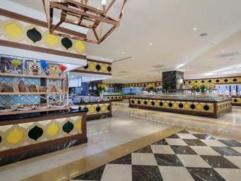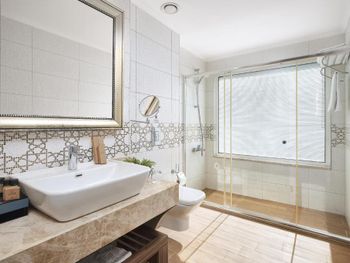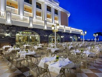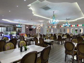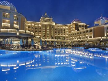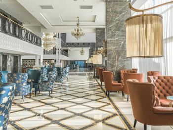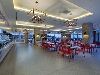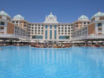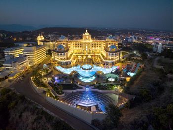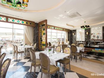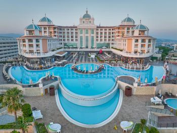 Мы приехали глубокой ночью. Вид отеля был потрясающий! Огромный холл, красивейшая люстра. Мозайка и благоухание в уборных. Сверкающий пол в холле. Нас встретил вежливой улыбкой Филит. Постарался понять нас и сделать все возможное для нашего комфорта. Предложил холодную водичку, дезинфицирующее средство, проверил бронь. Мы путешествовали на автомобиле и приехали слишком рано. Рассвет мы встретили в креслах у отеля. Утром начались наши мучения. В результате того, что не удалось произвести оплату на Букинге( т.к российские карты не принимают) бронирование было с оплатой на месте. И тут, та-дам- карты мир, виза не принимают. Оплата картой летим невозможна из-за отсутствия оплаты по QR коду . Итог- оплата наличными ? или ?. Благо были наличные. В отель мы приехали на семейный праздник. Из трех стран. И тут, странное совпадение, администратор заступивший утром, чудесным образом заселил уже в 10 утра три пары наших родственников из Германии , приехавших намного позже нас, а мы не спавши всю ночь еще до обеда ждали заселения. Он наглым образом выпрашивал чаевые. Но это обычная история в Турции. Наконец,зайдя в номер мы выдохнули! Отдых начался! Богатая кухня. Правда есть в ней и минусы. Порадовала рыбка и морепродукты. Красивый бассейн. Ухоженная территория. 7 дней для этого отеля мало! Я не успела исследовать все уголки этого великолепного места! Например, только в последний день увидела горки?, только на чужих фотках увидела прекрасную локацию с красной телефонной будкой??? В общем, то ли у нас компания была классная, то ли и правда все было прекрасно- нам все понравилось!