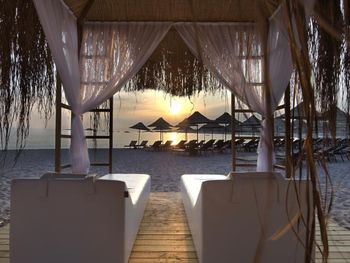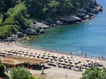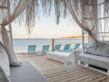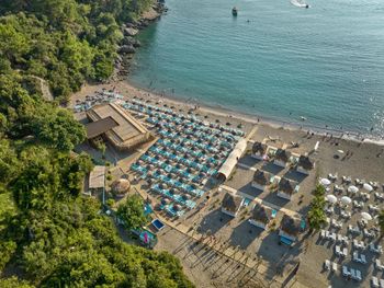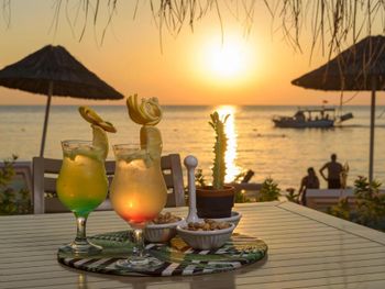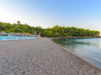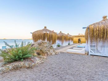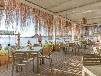 Очень красивый пляж со спокойным голубым морем, снэк баром и пляжными бунгало. Можно пообедать прям на пляже.