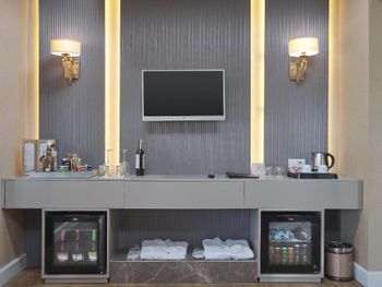 Все номера отеля с сейфом, балконом и мини-баром оборудованы кондиционером. Собственная ванная комната с душем укомплектована феном и бесплатными туалетно-косметическими принадлежностями. Из номеров открывается вид на море и бассейн.