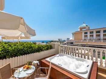 Очень вкусная еда! Действительно вкусная, огромный выбор, каждый найдет что-то для себя. И даже десерты вкусные. Много фруктов! Доброжелательный персонал. Очень понравился пляж, вода кристально-чистая, классная придумка с трактором, который возит на пляж. Рядом живописный городской парк, где можно встречать закаты. Джакузи супер! Большой балкон! Уборка на высшем уровне, всегда все чисто! Ежедневно наполняют минибар. Есть спортивный зал и неплохой хамам.
