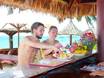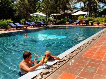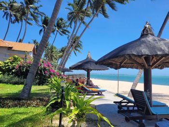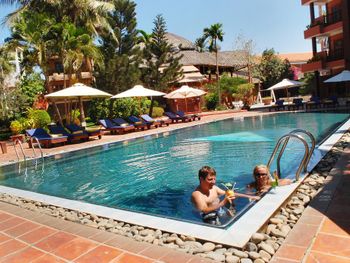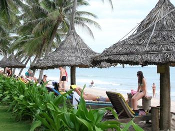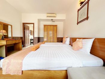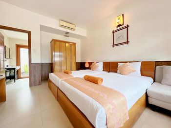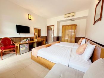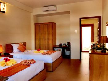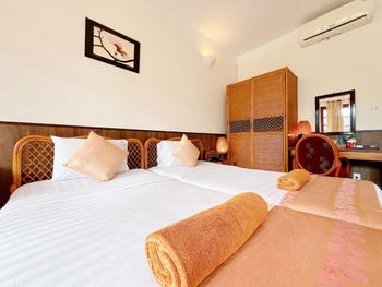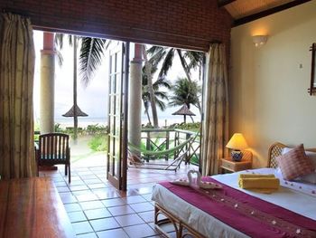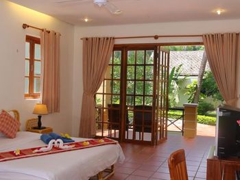 Очень уютный курортный отель с прекрасным ландшафтным дизайном на территории. Очень чистый, персонал постоянно следит, чтобы всё находилось в рабочем состоянии. Уборка номеров ежедневная и тщательная, постоянно обновляют питьевую воду и туалетные принадлежности в номере. Бассейн не очень большой, но чистый. Кстати, из большинства номеров имеется частичный вид на океан (!), что почему-то не указано в описании номера на booking.com. Завтраки (шведский стол) достаточно обильные: в том числе индивидуально готовят омлет и вкусные вьетнамские супы. Еда в целом в азиатском стиле: на каждом столе стоят подставки с вилками, ложками и палочками для еды, а также соевый и рыбный соус - это очень удачное решение! Ресторан отеля работает также и на обед и ужин (по меню). Мы постоянно ужинали в ресторане отеля: выбор блюд достаточно разнообразный, много блюд из морепродуктов. Обслуживание в ресторане тоже на очень достойном уровне. Если заказывать блюда вьетнамской кухни, порции будут просто огромные! На пляже стоят бесплатные лежаки, пляжные полотенца также выдают бесплатно.