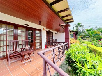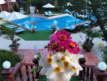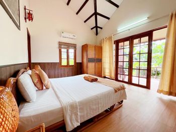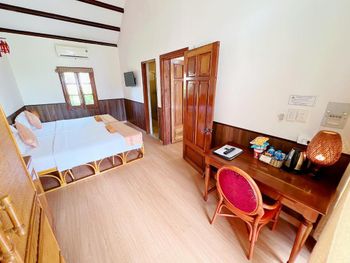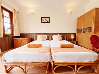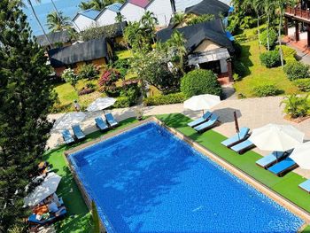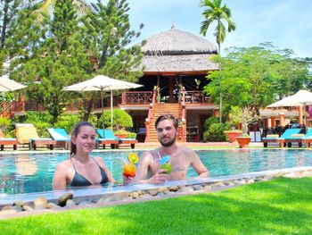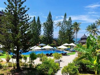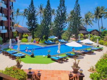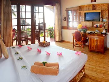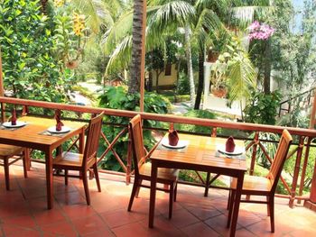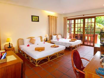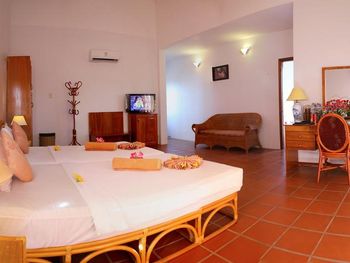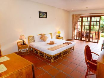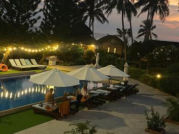 Прекрасные цветы и деревья на территории отеля и вид на море из бунгало у моря. Спокойная и уединенная атмосфера, вкусные завтраки. Очень приятный и отзывчивый персонал. Расслабляющий массаж в палатке у моря. В дождливую погоду гости пели в ресторане караоке. Бассейн - и глубокий, и детский, с хлоркой.