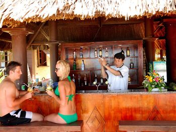 Хамское, пренебрежительное отношение персонала. Жили в самой дорогой вилле прямо на пляже, кувшин с водой для мытья ног не наполняли 2 дня, пока не позвал менеджера. Заявленные услуги не представлены - нет ни одного русскоговорящего человека. Тараканы в номере большие!!! Унитаз не смывает - менеджеры качают головой и говорят, что это норма. Бассейн зацвёл, позеленел и воняет (фото). Ни кто не купается, а они и не переживают. Ходят вокруг и репы чешут! Но это мелочи!!! Если вы пенсионер, то вам прямая дорога сюда! Не кричите, громко не говорите, пиво не пейте, друзей не приглашайте, музыку не слушайте. Общаются как с собаками на ломаном английском. Включили колонку на пляже, какой - то старпёр пожаловался и прибежали попросили сделать потише. Сделали на минимум, прошло 10 минут и пришёл менеджер, сказал выключить совсем, кто - то жалуется, хотите музыку - идите в номер и там слушайте. То есть какой - то гость не любит музыку, а я должен с пляжа уйти или сидеть в тишине. Он гость, а я кто?! Мы тут же с друзьями выехали, сделали чек-аут. Они потеряли 2 виллы на берегу, зато удовлетворили старого(ую) варчуна. Спасибо, что деньги вернули за оставшиеся дни в полном объёме! Удачи! Мы бронировали этот отель 3й раз и последний. Менеджер потерял постоянных клиентов.