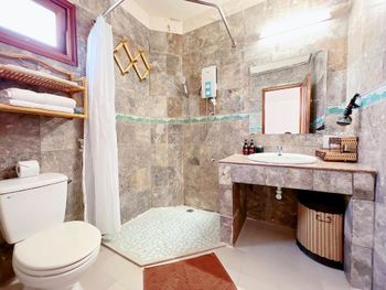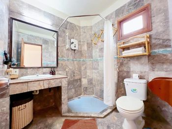 Свет в номере (по крайне мере у нас) был недостаточен для чтения вечером. В спортзале тренажёры нуждаются в обновлении, ну и кондиционера там нет. Красная плитка в отеле ОЧЕНЬ скользкая после дождя или влажной уборки. Что касается океана, то по крайне мере в период нашего проживания он был очень грязный: много мусора (целлофан, обрывки от сетей и т.п.). Сотрудники отеля постоянно убирают полосу песка, но прилив каждый раз приносит новый мусор. Тем не менее купаться можно, так как дно пологое песчаное.