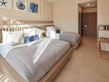 В номере текли оба душа. Проблему так и не решили. Запах плесени и сырости в номере, жить можно было только с открытым окном. Отвратительно работал кондиционер, жил своей жизнью, сам выключался или менял настройки температуры. Бармен ударил моего ребёнка по руке, за то что он потянулся за зубочисткой. В основном ресторане официантов для заказа или получения напитков было не дождаться. Территория очень маленькая и совсем нет зелени. Мы были в ноябре, так что не очень это смущала, но полагаю, что летом там будет невыносимо, так как тени нет совсем. Дорога до пляжа - унылая пустыня.