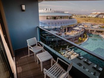 - Территории у отеля нет вовсе. А то, что есть непонятным образом спроектировано. Попасть в аквапарк можно пройдя под землей?