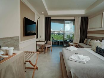 Имейте в виду - отель очень маленький, территории для прогулок нет! Рядом стройка и ее реально слышно и отлично видно ото всюду! Отель не рассчитан на полную загрузку, персонал не справляется, ну и, собственно говоря, персонал не очень улыбчивый и дружелюбный. Когда я взяла в руки детское питание и одна банка у меня выскользнула из рук и упала, а рядом был шеф-повар, то он не улыбнулся мне и сказал "no problem", на его лице я увидела боль и страдания, как будто я разбила хрустальную бесценную вазу, и мне было так неловко, хотя я заплатила за этот отдых приличные деньги и таких эмоций испытывать не должна. В остальном еда была вкусная, коктейли тоже были прекрасные, уборка была хорошая, пляж был неплохим, но опять-таки - в 10:00 утра шезлонгов уже не будет. Имейте ввиду. И в ресторане столик найти - это еще надо постараться. Чувствуешь себя как будто ты пришел в Макдональдс, куча людей и ожидание свободного столика! Разве что качество еды отличается.
