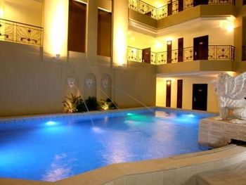 На 4 этаже находится открытый бассейн с шезлонгами, установленными в окружающем его патио. Гости могут посещать паровую баню и сауну.
