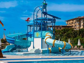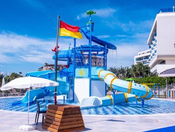 Минуса только два, это пляж (лежаки новые ,но вход в море оставляет желать лучшего) и отсутствие аквапарка. Но это всё решается переходя через одну дорогу, рядом находится отель Lonicera World Resort, вход бесплатный и никаких проблем при входе. Кроме основных ресторанов (где выдают завтрак, обед и ужин) можно пользоваться всеми удобствами. Отсутствие Аквапарка это минус и плюс одновременно, потому как он очень шумный, очень много людей и много криков. Lonicera World Resort более шумный отель и в разы больше. Тем кому нравится большие и активные отели, лучше выбрать Lonicera World Resort. Минус не значительным был для нас.