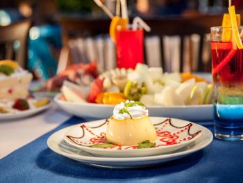 Ежедневно для гостей сервируют завтрак, обед и ужин «шведский стол». В ресторане отеля подают блюда из морепродуктов и блюда турецкой кухни. В определенные дни гости могут заказать блюда быстрого питания, кондитерские изделия и фрукты в течение дня. В баре отеля можно заказать разнообразные напитки.