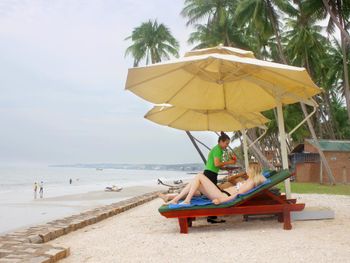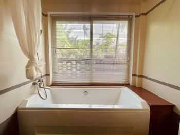Ванна обычная, а не гидромассажная. Бассейн не работал, был без воды. Первая линия сомнительная, перед отелем стоит другой отель, а чтобы выйти на место, где можно купаться, нужно дойти до воды и пройти ещё. Дверь в наш номер легко открывалась снаружи. И это привело к тому, что в 6 часов утра кто-то зашёл к нам в номер и включил свет! Персонал при выселении попросил прощения и вернули 200 тысяч донгов.
