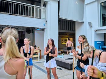 Маленькие номера, в которых нет холодильника и даже шкафа, чтобы сложить вещи!!! Номер дали с видом на стену по цене обычного. Коридоры грязные и обшарпанные, телевизор не работал. Я не знаю, почему это 4 звезды, тянет на 2 максимум. И ничего тусовочного в этом хостеле нет. Ринг вообще для красоты просто стоит. У бассейна всего 2 лежака на весь хостел.