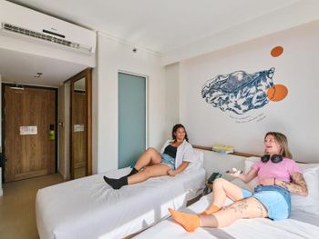 Современное, молодежное место с отличным персоналом и общей дружелюбной атмосферой. На всей территории много развлечений и мест для отдыха. Завтраки не очень разнообразные, но вкусные. каждый день можно пробовать что-то новое и возвращаться к полюбившемся блюдам. Номер небольшой, но чистый. Кондиционер, фен и напор воды в душе работали исправно. Хорошее место для недлительного отдыха и поиска компании.