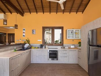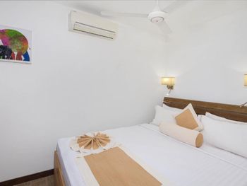 Шезлонгов на пляже много меньше, чем число постояльцев, которое может разместить отель, в высокий сезон есть вероятность найти место под солнцем и быть испепелённым, но зато сможет проверить исправен телевизор в номере или нет. 15-20 минут пешком до популярных питейных заведений, если по пляжу. Чуть больше до супермаркета, хотя всегда на помощь придёт тук-тук и за 200 рупий он отвезёт вас за настоящим, цейлонским чаем или шампунем, если вас не устроит отельная парфюмерия. Полотенца могут попасться с въевшимися пятнами, а фантазия может сделать их опасными, а может не только фантазия.