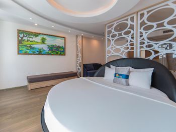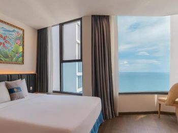 Расположение отеля на юг от центра. Пешком минут 20. Сам отель в глубине,через дорогу от моря. Номер с видом на море, но вид как через узкий коридор, т.к. слева и справа 80% вида перекрывают соседние отели. Окна большие но не открываются, балкона нет. Вещи сушить не получится и в целом в номере душно. В номере не работал холодильник - испортилось 2 кг манго. Обещали починить, но не починили. Кондиционер дует точно в ухо, если лежать на кровати. Приходилось убирать обдув на ноль и ставить 28 градусов и то утром ухо закладывало. В номере в целом ок. Уборка приходила в 9 утра, когда я спал. По этому за 4 дня проживания ни разу не убирались. Полотенца к 4 дню хоть выжимай. Завтрак с 6 до 9 утра. Первый раз пришёл в 7:30 еды и кофе уже не было. Съел 1 яичницу и выпил стакан сока. Все! На следующий день пришёл к 6:30. В кафе человек 50 азиатской внешности, которые как стадо голодных чаек сметают все. Больше на завтрак не ходил. В номере на 20 этаже очень шумно! Постоянно что-то долбили, слышно разговоры. В итоге из 6 отелей в которых я побывал за время проживания в Нячанге этот самый худший.