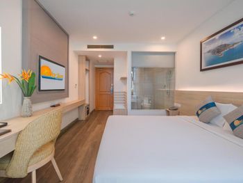 Отель не соответствует заявленной 4 звездам, Максим это 2 звезды. Завтраки есть не воз возможно, они отвратительные!! Пирожные старые и высохшие. Мы изменили время пребывание в отеле , штраф был 800т донгов, так отдел бронирования вручную сменили штраф на 2500млн донгов, взяв мой паспорт и не отдавая его мне, пока не соглашусь на их условия.