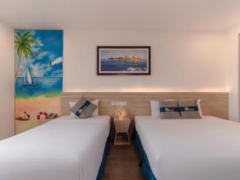 Отель старый, хоть на фото и выглядит неплохо, в реальности драные пододеяльники, в туалете запах канализации и если кто то в соседнем номере курит, то запах несет в ваш номер. Полы подметают, не моют. Но переночевать можно, за такую стоимость на первой линии пойдёт.