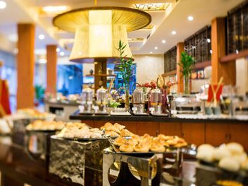 В китайском ресторане на территории отеля подают изысканные блюда кантонской, сычуаньской и местной кухни, а в ресторане Western сервируют «шведский стол» из блюд интернациональной кухни.