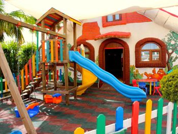 Очень маленькая территория Закрытый выход с территории на пляж до 7:00 (была потребность в 6:30) Дважды были оставлены личные вещи на территории отеля, и ни в одном случае ничего не вернули, есть полное впечатление, что персонал никак не сфокусирован на возврате найденных вещей. Единственное развечение для детей - горки, несколько дней не работали, а так же были случаи не своевременного начала их работы, при этом всегда очень строго соблюдалось время окончания их работы. Не удобное время работы горок для купания.