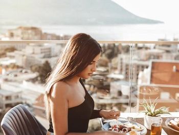 Хороший завтрак на последнем этаже с красивым видом, не очень далеко пешком до променады и центра