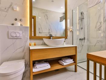 В номерах Hotel Lusso Mare by Aycon установлен кондиционер, сейф и телевизор с плоским экраном. Среди прочих удобств — письменный стол, чайник и мини-бар, а также собственная ванная комната с душем. В собственной ванной комнате есть бесплатные туалетно-косметические принадлежности. Гостям Hotel Lusso Mare by Aycon предоставляются постельное белье и полотенца.