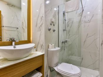 Завтраки крайне скудные. В 8 утра к нам в номер без стука вошла уборщица. В душевой не справляется слив, вода доходила прям до кровати в спальне. Смыв в бочке унитаза заедает. Светильники в спальне и розетки не работают. Подушек куча, но все большие и очень плотные. Отель этих денег не стоит
