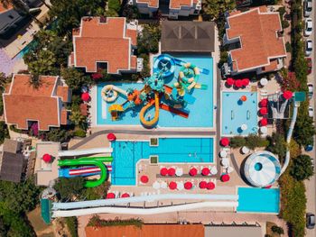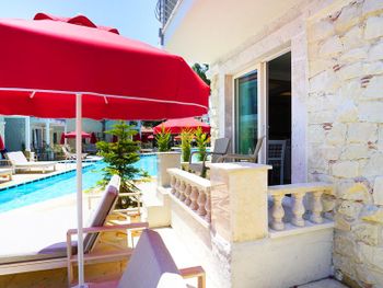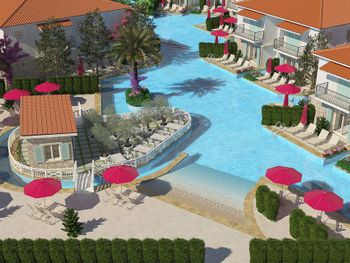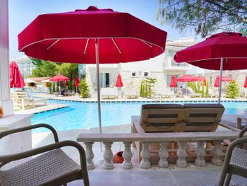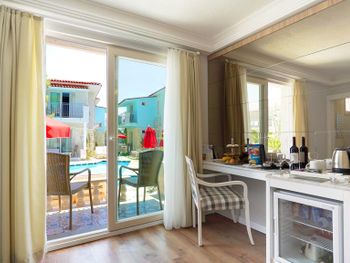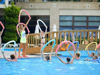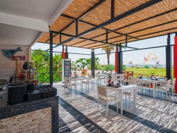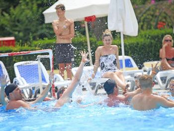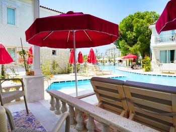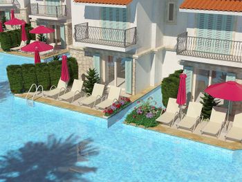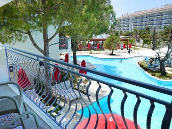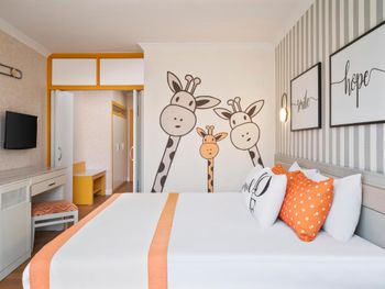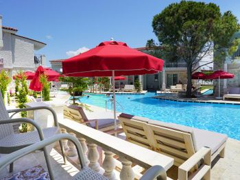 В целом понравился отель. Расскажу по пунктам: 1. Жить лучше в домиках на первом этаже. Домики это отдельная зона, недалеко от основного здания. Но: есть свой ресторан, где проходят завтраки, обеды и ужины. И людей гораздо меньше, чем в основном здании. Еда та же. Жить лучше на первом этаже, так как выход сразу в бассейн и к своим лежакам. Посторонних нет. Мы жили на втором этаже, у нас тоже были свои лежаки, но приходилось бегать на второй этаж, а так можно было бы сразу заходить номер. Пока дети спят, может было бы купаться, открыв просто дверь балкона:) 2. Еда. Еда не очень вкусная. Разнообразная, но пресная, соусы невкусные. Детского стола нет. 3. Бары. Бары у каждого бассейна, но алкоголь только местный и не очень вкусный. Мы подружилось с барменами, жавели им чаевые и они делали нам вкусные коктейли, но все с тем же местным алкоголем. 4. Анимация. Очень скудная. Ее практически нет. Локально проходит аквааэробика, вечерние шоу, но никакой информации о мероприятиях нигде нет. 5. Уборка. Уборка ежедневная, достаточно качественная. Полотенец в номере кладут всегда с большим запасом. 6. Номера. Номера шикарные! Очень большие, с большим балконом и ванной комнатой. В номере две дополнительных кровати (одна на одного, другая на двоих), опускаются со стены, что очень удобно, так как не занимают места, когда подняты. 7. Море. Море было идеальным. Хороший Пирс с навесом, заход в море чередуется мелкая галька с крупной галькой. В целом удобный, никакие тапочки не нужны для захода в воду. 8. Развлечения. Есть небольшой аквапарк (8 горок). Есть совсем для маленьких детей зона, пара больших горок, пара средних и зона для всех- средник горки, самые удобные и новые. На остальных больно кататься из за больших стыков. Вода в бассейнах тёплая! Как температура воздуха. В целом за свою стоимость отель очень хорош! И я бы его советовала!