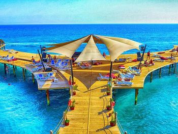Пляж,море,очень доброжелательный и приветливый персонал.