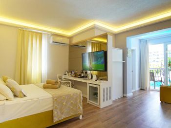 Мы работаем над переводом этого описания на ваш язык. Приносим извинения за неудобства.Selectum Family Comfort Side is located on the Mediterranean coast with a private 200-metre long sandy beach. The hotel offers 2 outdoor pools, an indoor pool, 6 water slides and spa facilities.