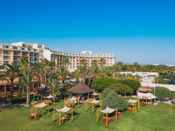 Понравился аквапарк для детей, близость к морю и наличие пирса, много бассейнов. Еда нормальная- есть выбор, много видов мяса/ овощей/ гарниров/ фруктов. Ходит часто трансфер до Лира шопинг- центра ( в основном спортивная одежда). Номер в главном здании понравился, убирали каждый день-чисто, очень приветливый клининг-персонал.