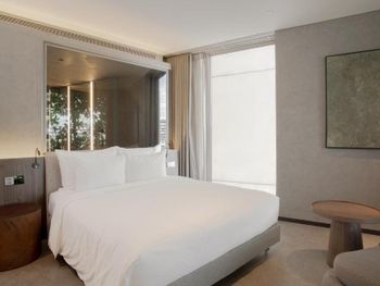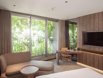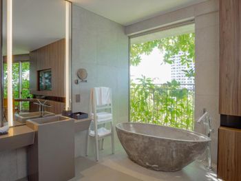 Отель современный, достаточно комфортный, но решение с санузлом в номере за раздвижной дверью достаточно спорное, не все готовы к такой степени единения. Плюс в угоду дизайну страдает функциональность, так как сушить вещи неудобно, организация номера не позволяет удобно разместить вещи.