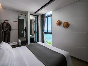 Новый уютный отель. Брали номер с видом на море, небольшой кусочек его конечно было видно). В ванной комнате так же большое окно, но держали его постоянно закрытым - напротив тоже здание отеля. Приятный персонал, говорящий на английском. Уборка ежедневная. Есть небольшой паркинг около отеля (для скутеров). Охрана около отеля всегда помогала поставить и выкатить скутер, так как достаточно плотно все припаркованы. Завтрак по меню (можно брать несколько блюд), достаточно вкусно. Шведский стол - только напитки. Много различных соков, кофе/чай, вода. В номере присутствует сейф. К телевизору можно подключиться по bluetooth. Своего пляжа нет, там скалы. Небольшой бассейн с лежаками и диванчиками. Приятный бонус - предоставляют трансфер от и до аэропорта (по расписанию).