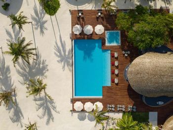 Отель расположен на частном острове в нетронутом районе атолла Южный Ари, примерно в 25 минутах полета на гидросамолете от международного аэропорта имени Ибрагима Насира. Окруженный мягкими белыми песками очаровательный островок с пышной растительностью и рифом, в котором живут мириады тропических рыб, можно всего за 10 минут пройти пешком, в его длина составляет чуть более 350 метров! Виллы с соломенной крышей построены в местном архитектурном стиле и окружены зелеными садами или возвышаются над бирюзовой лагуной.