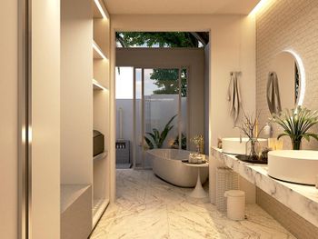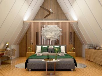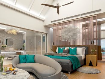 В виллах очень чисто - уборка номера происходит дважды в день, убирают быстро, но капитально. Интерьер вилл весьма приятный, просторный, естественно есть кондиционер и еще вентилятор на потолке чтобы быстро охладить помещение, если вдруг потребуется.