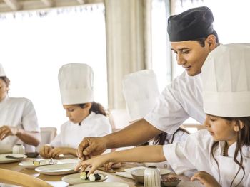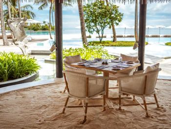 Трансфер (5мин подождите, превращается в 3 часа). Медлительный персонал. Обманывают с счетами (в меню одна цена, в счёте ставят выше цены, как пример ужина - в меню блюдо 120$, в счёте 165$, потом вечное sorry - ошибка компьютера). Завтрак приемлим, обед и ужин на одном листосточке и съедобное только 3-4 блюда и это есть 12 дней. Дети заказавают мороженое, 30мин никто не несёт, они сами идут и приносят растаявшее мороженое. Обслуживание отвратительное. Отель обманщиков, на все один ответ - sorry. Никому не советуем и никогда болше в эту сеть не поедим. Батлер совсем не выполняет свои функции (про него можно много написать, время жалко. Кратко: 31 декабря в детском клубе был дед мороз - нам это не сказали, 7января на Рождество были накрыты столы в главном ресторане - узнали только через два дня что было такое). Хотели на третий день покинуть отель и переехать на другой остров - категорично отказались обсуждать возможность возврата денег. Дайв центр в отеле отвратительный - принимают решение куда плыть уже на лодке, опускают на глубину под 30 метров, смотреть песок (понятно для чего - быстрее чтобы воздух закончился). Риф у отеля мертвый, рыб очень мало. Более 20раз были в разных отелях на Мальдивах и нигде так не портили последний день: потратили 3 часа на оплату счета. Дали счёт на проживание е в отеле и новогоднюю ночь 50%, сказав и показав им что все было оплачено ещё в декабре, они час проверяли прыгав у компьютера как "макаки", потом опять sorry. Один из топ менеджеров сказал что дадим скидку завтра перед отъездом за причинённые неудобства и я лично вас буду провожать. Утром за час до вылета спросил где этот топ менеджер который хотел дать скидку - он спит и как проснётся подумает насчёт скидки:)