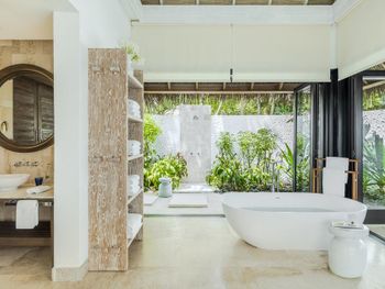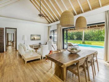 - Отличный домашний риф для снорклинга. - Очень много зелени, высоких деревьев, много птиц и летучих лисиц. Полноценное ощущение тропического острова. - Сразу к вилле привезли велосипеды для всей семьи, на них удобно перемещаться по острову. - Большая пляжная вилла. - Качество продуктов -Можно везде и всегда ходить босиком