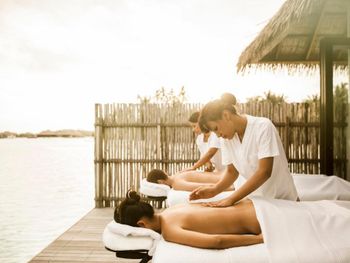 Услуги спа-центра COMO Shambhala Retreat включают в себя азиатскую терапию, питание, физические упражнения и йогу с ориентированной на результат программой, которую проводят эксперты в области холистической медицины. Для гостей организуют экскурсии по наблюдению за китовыми акулами, самыми большими рыбами в море. Можно выбрать поездку по расписанию в Фермерскую зону — огороженный риф с равномерными волнами, которые идеально подходят для ноузрайдинга на различных досках, сапсерфинга или даже шортбординга, или арендовать более дорогой частный катер, чтобы добраться до отдаленных, уединенных мест для серфинга. Кроме того, любители серфинга могут воспользоваться услугами всемирно известной школы Tropicsurf.