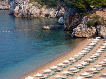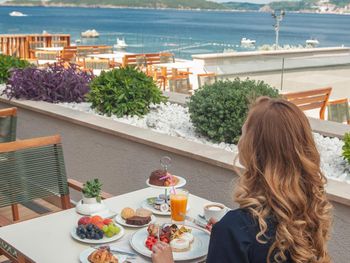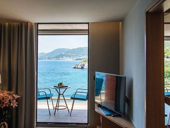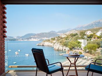 Шикарный отель со спа и казино, ради него и ехали. Вид из номера (если брать номер с видом на море) — на бухту Свети Стефан, потрясающий!