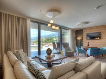 Расположение: довольно камерная бухта Пржно, близко Рафаиловичи (5 минут на такси) и Будва (10 минут). Рядом парк для прогулок, пешком можно дойти до Свети-Стефан. Пляж большой, удобный. СПА: просторный, хорошие тайские массажистки. Приятный квалифицированный персонал.